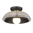 The Crawford flush mount combines modern matte black styling with vintage-inspired prismatic glass for dynamic light refraction. Perfect for low ceilings, this compact fixture delivers both function and style.