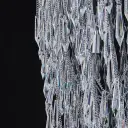 The Frangia pendant makes a bold statement with its cascading crystal fringe creating an organized randomness effect. At 34 inches wide and featuring chains supporting crystal spears, this piece delivers high-end glamour with a bohemian twist.