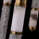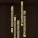 The Tubo features the layering of natural materials such as Alabaster, brass, and crystals to create complex beautiful textures that play with light. Add natural luxury to your living space with these Art Deco linear pendants that are offered in a Natural Brass finish and integrated LED lamping.