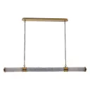 The Tubo features the layering of natural materials such as Alabaster, brass, and crystals to create complex beautiful textures that play with light. Add natural luxury to your living space with these Art Deco linear pendants that are offered in a Natural Brass finish and integrated LED lamping.