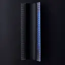The Tonalita Esterno wall sconce, characterized by its minimalist architectural design and vibrant LED lighting, is a striking blend of Stainless Steel and crystal accents. It offers customizable light colors or an option to cycle through RGBW settings, all effortlessly controlled via a Bluetooth phone app. Suitable for both outdoor and indoor use, this wet-rated fixture ensures ease of cleaning and maintenance. Its Matte Black Fluorocarbon finish is designed to endure even the most severe weather conditions.