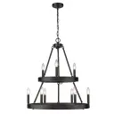 The Alastair 9-light chandelier combines transitional design with contemporary sophistication. Its open 2-tier structure and matte black finish create a striking focal point while providing ample illumination for dining and living spaces.