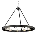 The Castile chandelier combines transitional elegance with modern minimalism in a striking 32-inch matte black fixture. Its low-profile design and exposed structure create dramatic visual impact while providing ample illumination.