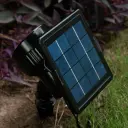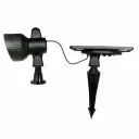 Heavy-duty cast aluminum solar spotlight perfect for illuminating landscape features, plants, and architectural details. Features detachable solar panel with 8-foot cable for flexible placement and dual color temperature modes.