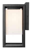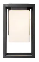The Gladwin wall sconce combines a sleek matte black steel frame with an opal etched glass shade, delivering soft, diffused outdoor lighting. Its compact 6.25" extension makes it ideal for smaller entryways and porches.