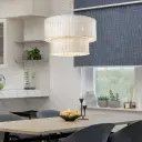 - Hand-woven white wicker shade adds organic coastal charm