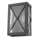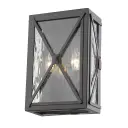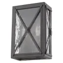 The Brooklyn 2-Light Wall Mount combines industrial styling with ADA compliance, featuring oil-rubbed bronze finish and clear water glass panes. Compact at 10.5" high, it's ideal for outdoor entryways and porches.