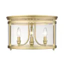 The Payton flush mount combines refined brushed champagne brass with clear glass for a sophisticated look ideal for low ceilings. Its compact 14.75" profile delivers ample illumination while maintaining an elegant presence.