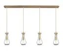 The organic teardrop shape of the Owego pendant is artfully hung from a tiered metal frame that is complemented by a single filament bulb. These pend...