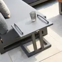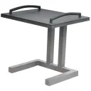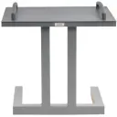 The Easy Side Table combines lightweight aluminum construction with practical design, featuring a removable serving tray with handles and integrated foot levelers for stability on uneven surfaces.