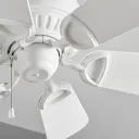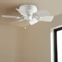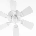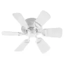 The Medallion Patio fan blends traditional design with contemporary appeal, featuring a 30-inch blade span perfect for smaller covered outdoor spaces and interior rooms. Studio White finish offers clean aesthetics.