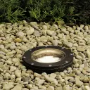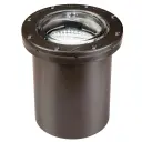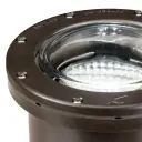 Low-voltage in-ground fixture designed for architectural and landscape accent lighting. Durable bronze construction withstands outdoor elements while providing focused illumination for pathways, gardens, and architectural features.