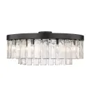 The Ciara 9-light semi-flush mount combines dramatic hammered water glass with a sophisticated matte black finish, creating intricate light patterns that elevate any space. Perfect for mid-height ceilings with convertible installation options.