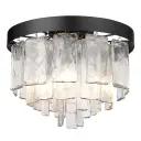 The Ciara flush mount combines sophisticated matte black finish with unique hammered water glass that creates beautiful light patterns. Perfect for low ceilings, this compact fixture delivers glam elegance with easy installation.