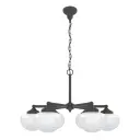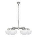 The Saddle Creek chandelier illustrates the contemporary design principle of better, not more. Six classic glass globes—available in cased white or cl...