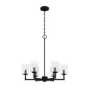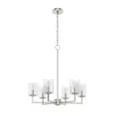 The transitional, modern style of this metal chandelier with geometric details and glass shades adds a modern grace to your space. Light up the nights...