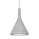 The Gala Natural pendant combines raw cement construction with refined metalwork for an urban-industrial aesthetic. Its conical shade directs focused light downward, making it ideal for task-oriented spaces.