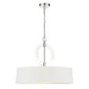 4 Light Pendant in Polished Nickel Finish with White Fabric Shade