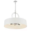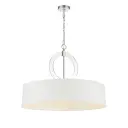 5 Light Pendant in Polished Nickel Finish with White Fabric Shade
