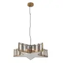 5 Light Pendant in Artisan Brass with Mercury Pane Glass