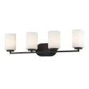 The Manhattan 4-Light Vanity combines timeless transitional design with practical functionality. Its matte black finish and opal glass shades create a sophisticated, glare-free lighting solution perfect for modern bathrooms.