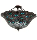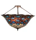 28" Wide Tiffany Peacock Feather Inverted Pendant