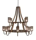 60" Wide Barrel Stave Winter Maple 12 Light Two Tier Chandelier