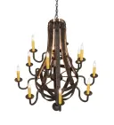 48" Wide Barrel Stave Madera 12 Light Two Tier Chandelier