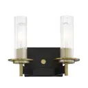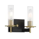 The Baldwin Park 2-Light Bath combines traditional styling with modern finishes. Coal black paired with soft brass accents creates sophisticated contrast, while clear ribbed glass shades add vintage charm and excellent light diffusion.