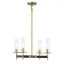 4 Light Chandelier in Coal and Soft Brass Finish with Clear Ribbed Glass