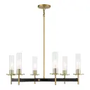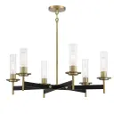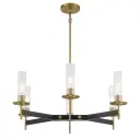6 Light Chandelier in Coal and Soft Brass Finish with Clear Ribbed Glass