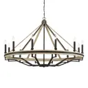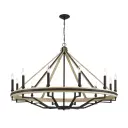 Rustic Elegance: Expansive 12-Light Chandelier with Natural Wood Accents