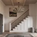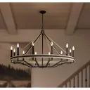 The Sonoma chandelier combines dark bronze metalwork with solid oak wood for a striking farmhouse aesthetic. Its generous 47.75-inch span makes it perfect for large dining spaces and kitchen islands, while 12 dimmable lights provide ample illumination.