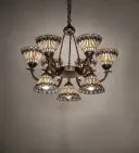 33" Wide Tiffany Jeweled Peacock 9 Light Chandelier