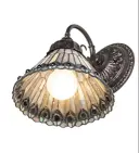 8" Wide Tiffany Jeweled Peacock Wall Sconce
