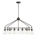 The Stella chandelier makes a bold statement with its impressive 52-inch span and 13 candelabra lights. Dark bronze finish paired with clear glass creates sophisticated contrast perfect for transitional interiors.