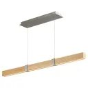 The Decca 48" pendant combines rectangular forms with warm white oak and cool satin nickel for a sophisticated, balanced look. Its substantial 48-inch length makes a statement over dining tables and kitchen islands while maintaining clean, contemporary lines.