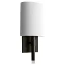 The Beacon wall sconce combines a white fabric diffuser with a bold square backplate for a sophisticated, contemporary look. The 3000K warm LED provides comfortable ambient lighting, while the Old World finish adds timeless appeal.