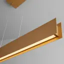 The Brio 36" LED pendant delivers contemporary sophistication with its clean rectangular design and warm powdered gold finish. Energy-efficient 3000K LED lighting provides excellent illumination for task and ambient needs.