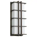 The Telshor Large wall sconce delivers striking architectural presence with vertical fin detailing and warm LED illumination. Wet-rated and dimmable, it combines modern design with durability for outdoor applications.