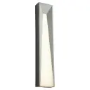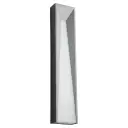 The Calypso Large outdoor wall sconce combines sleek modern lines with a white polycarbonate diffuser to create captivating light and depth. Its gray finish and contemporary aesthetic make it versatile for residential and commercial applications.