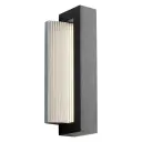 The Verve 14" Wall Sconce delivers striking modern design with its ribbed diffuser and two-tone black and brushed aluminum finish. Wet-rated and dimmable LED technology make it ideal for both outdoor facades and contemporary interiors.