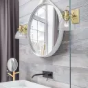 Homeowners seeking vintage farmhouse charm in powder rooms, guest baths, or as accent lighting in smaller bathrooms