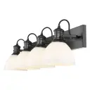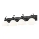 The Hines 4-light vanity combines traditional elegance with modern functionality. Its matte black finish and opal glass shades create a sophisticated, glare-free lighting solution perfect for bathrooms and dressing areas.