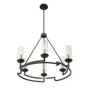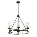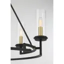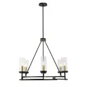 The Hillstone chandelier combines contemporary design with industrial charm through its striking two-tone finish. Six candelabra lights provide ample illumination while clear glass shades maintain an airy aesthetic.