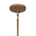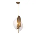 The Saint Martin pendant combines warm Ashen Gold finish with natural alabaster stone and hand-hammered metal panels. This Robin Baron design brings organic sophistication to intimate dining spaces with its compact 14-inch width.