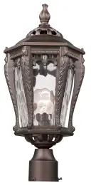 The Stratford post mount combines traditional design with weather-resistant cast aluminum and distinctive hammered water glass. At 20 inches tall, it provides substantial illumination for pathways and entryways.