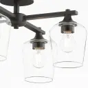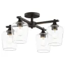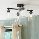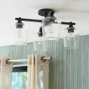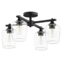 The Veno 4-Light Ceiling Mount combines angular metal frames with clear glass shades for timeless traditional appeal. The matte black finish adds contemporary edge while maintaining classic comfort and versatility.