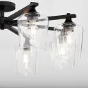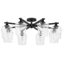 The Veno 8-Light ceiling mount combines angular metal frames with clear glass shades for timeless traditional appeal. The matte black finish adds contemporary edge while maintaining classic comfort and versatility.