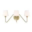 The Kennedy 3-Light Vanity combines transitional elegance with modern sophistication. Its Brushed Champagne Brass finish and Opal Glass shades create a soft, glare-free glow perfect for grooming. Damp-rated for bathroom use.